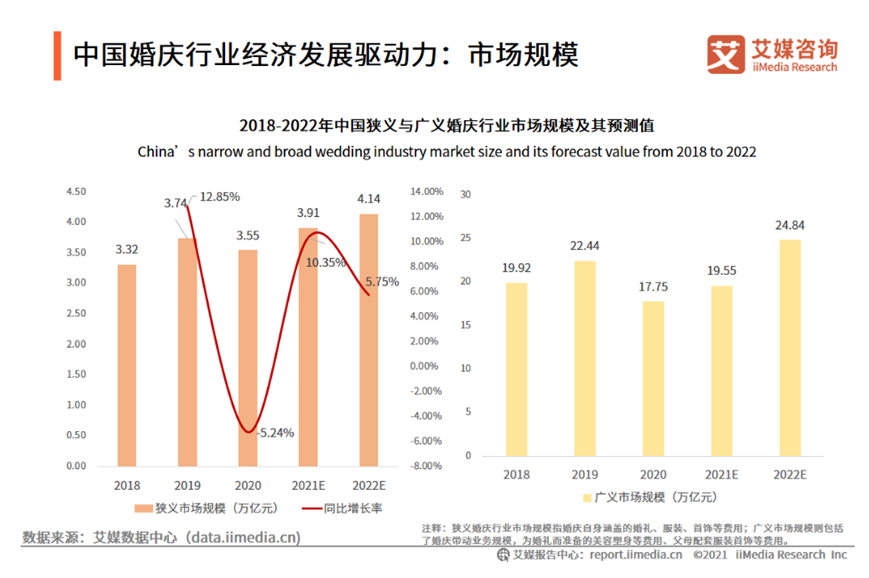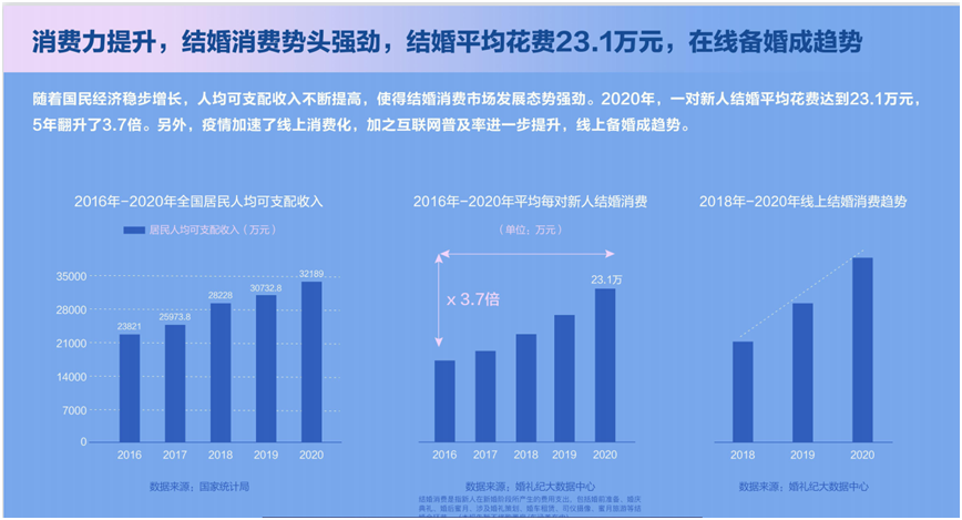 同時(shí),疫情背景下數(shù)字技術(shù)和應(yīng)用的不斷普及和優(yōu)化,也給婚慶行業(yè)帶來了新的模式轉(zhuǎn)型契機(jī),以互聯(lián)網(wǎng)婚慶為代表的線上婚禮形態(tài)多元,數(shù)字化婚禮趨勢(shì)日益清晰。