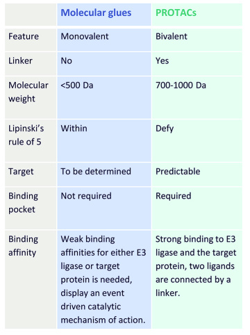 分子膠大多數(shù)是偶然發(fā)現(xiàn)的,而PROTAC可以通過合理設計實現(xiàn)。