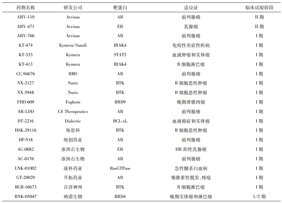 圖4 全球PROTAC藥物研發(fā)情況(不完全統(tǒng)計)