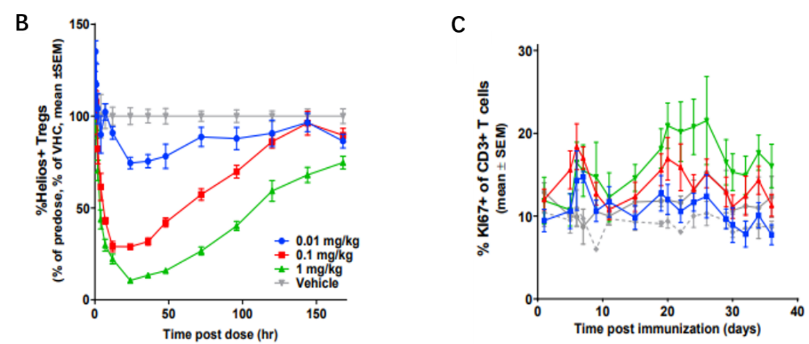 ② 通過流式細胞術(shù)評估小鼠和食蟹猴給藥DKY709對T細胞和Tregs細胞的影響。