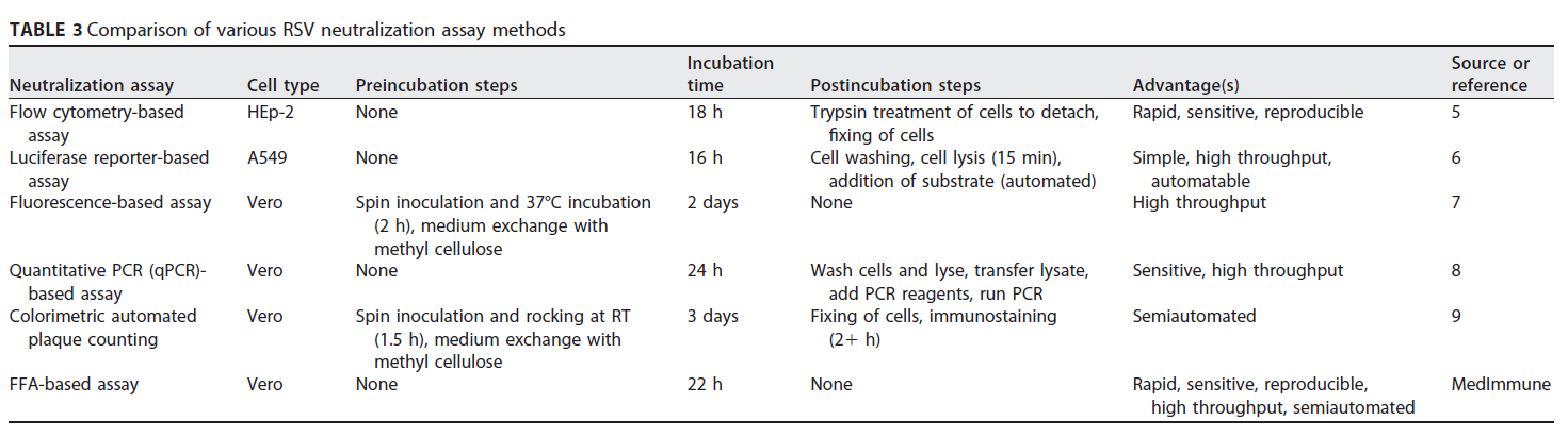 隨著越來越多的RSV疫苗獲批上市和進(jìn)入臨床階段,RSV疫苗的評(píng)價(jià)方法也越來越重要。RSV疫苗產(chǎn)品的臨床生物分析主要包括RSV中和抗體、結(jié)合抗體、RSV病毒載量以及細(xì)胞免疫等內(nèi)容。