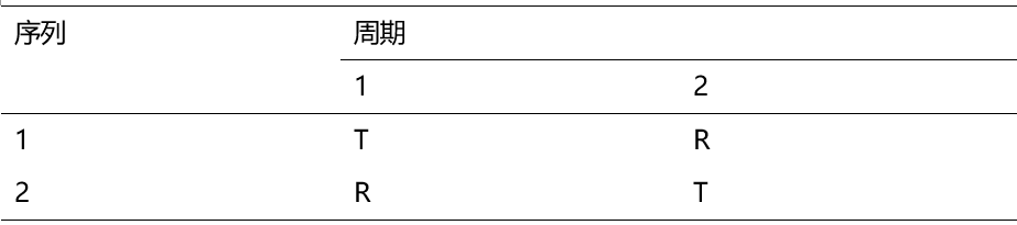 食物影響下,我們可以建立混合效應模型,模型中包括治療、周期、序列的固定效應項以及受試者的隨機效應項(嵌套在序列中)。從數(shù)據(jù)結構來看,表3展示了該設計方差分析的變異來源: