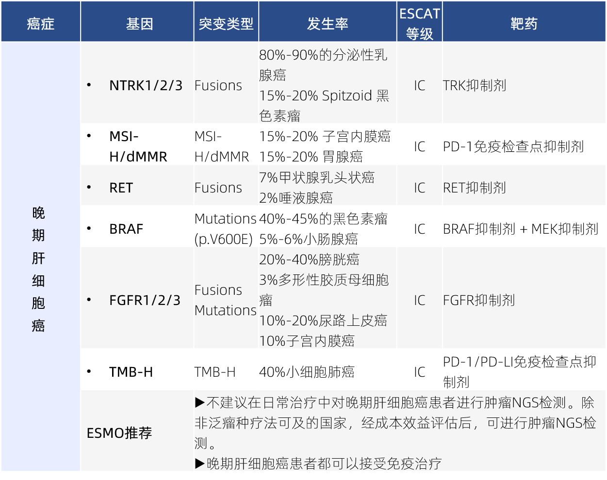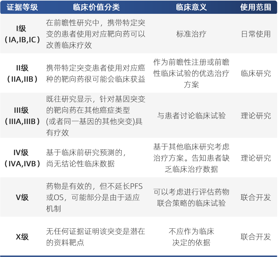 ESMO指南對(duì)基因變異的分級(jí)和臨床意義