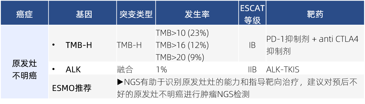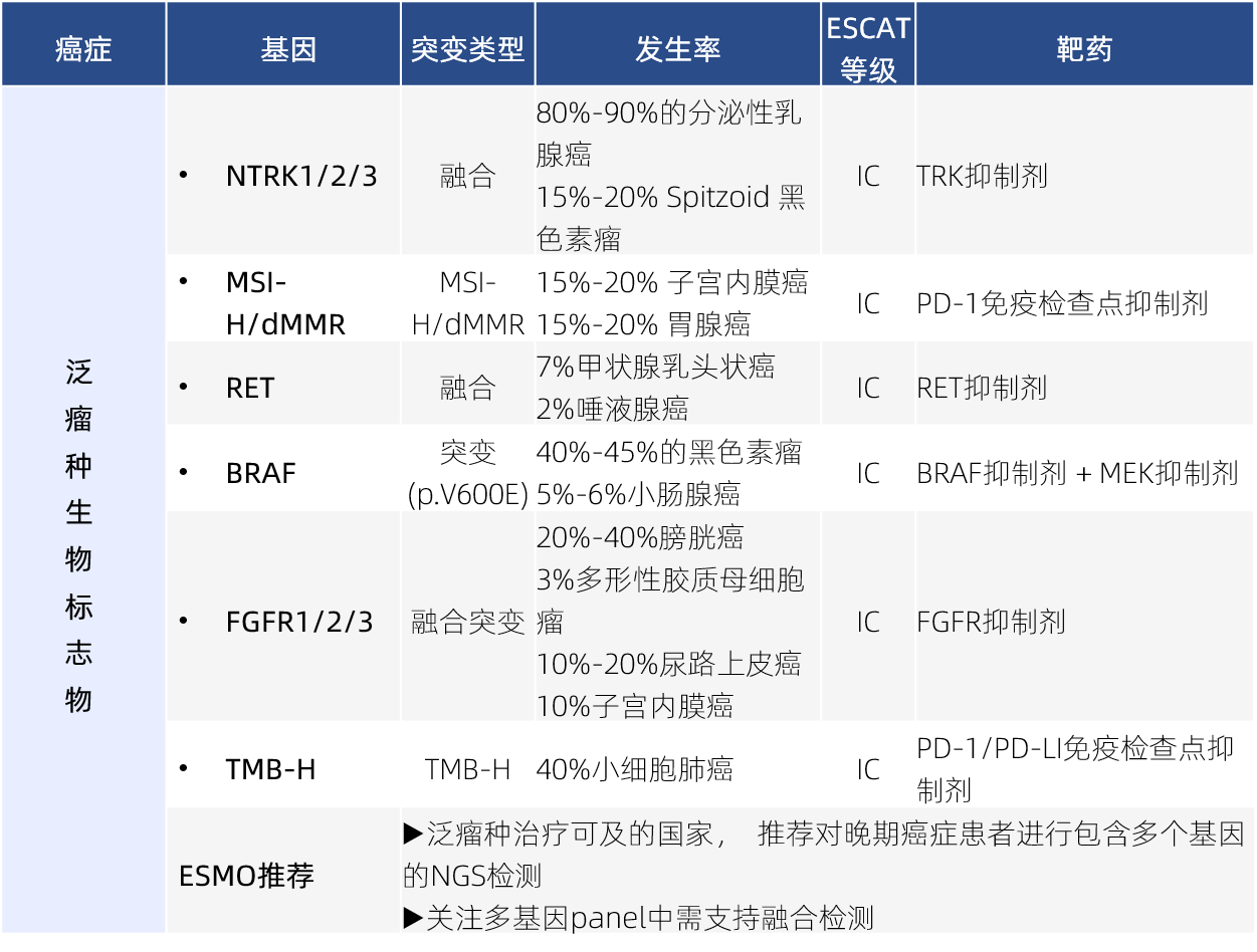 表2 泛瘤種生物標(biāo)志物和ESCAT I/II級(jí)基因組變異列表 [3]
