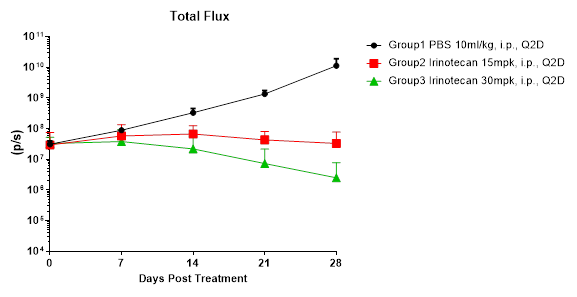 本文介紹的研究通過肝門靜脈注射結(jié)腸癌細(xì)胞系HT-29-luc來構(gòu)建肝轉(zhuǎn)移模型,結(jié)合IVIS小動(dòng)物活體成像系統(tǒng)監(jiān)測腫瘤生長,同時(shí)觀察伊立替康對腫瘤肝臟轉(zhuǎn)移的抑制效應(yīng)。