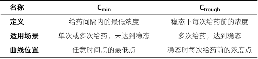 注:達(dá)到穩(wěn)態(tài)后,若給藥前的濃度點為一個給藥間隔內(nèi)的最低值,該濃度點為Cmin/ Ctrough