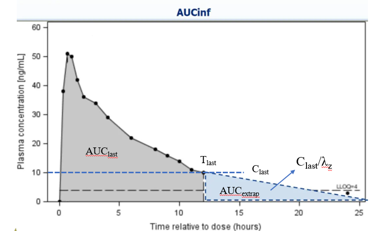 AUCextrap:從最后一個采樣時間點外推至無限時間的曲線下面積。