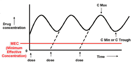 Ctrough(谷濃度):穩(wěn)態(tài)下每次給藥前的濃度。