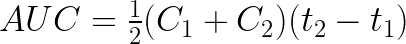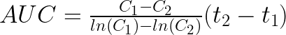 這里前兩項代表時間間隔內(nèi)的平均濃度,而(t1 - t2)則是該時間間隔的持續(xù)時間。線性法在整個時間間隔內(nèi)應(yīng)用平均濃度。