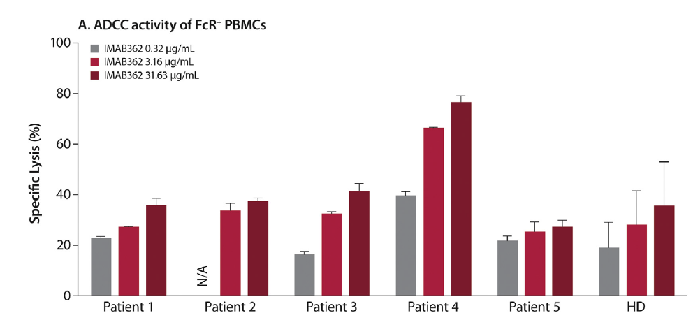 案例1:抗體藥物Zolbetuximab(anti-Claudin18.2)和cetuximab (anti-EGFR)的Ex vivo ADCC和CDC功能。