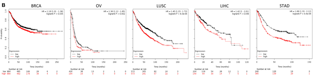 乳腺癌、卵巢癌、肺鱗癌、肝細胞癌及胃腺癌中,