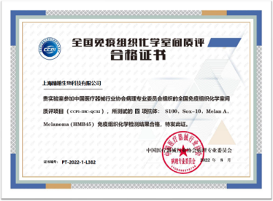 熙寧生物免疫組化實驗室(精翰生物)室間質評合格證書
