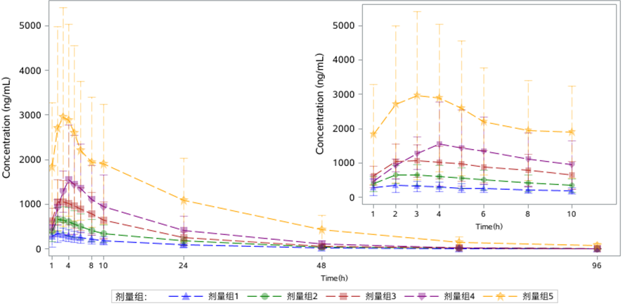 當(dāng)前期采血點(diǎn)較為密集導(dǎo)致不同分組的結(jié)果不易辨別時(shí),可以將部分時(shí)間截取出來(lái)放在曲線右上方來(lái)增加區(qū)分度。