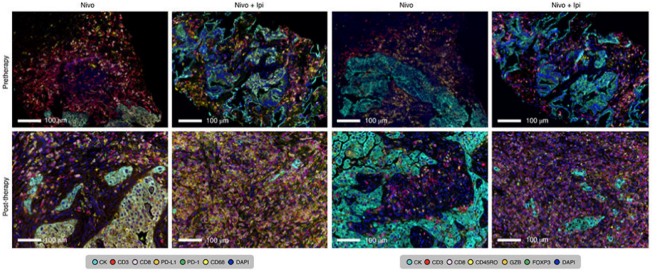 圖4 利用mIHC觀測治療前后多個靶點蛋白的表達水平變化