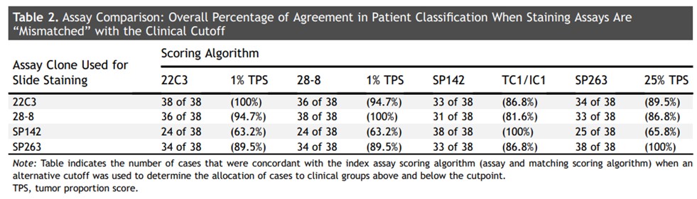 [7] Tsao MS, Kerr KM, Kockx M, et al. PD-L1 Immunohistochemistry Comparability Study in Real-Life Clinical Samples: Results of Blueprint Phase 2 Project. J Thorac Oncol. 2018;13(9):1302-1311. doi:10.1016/j.jtho.2018.05.013