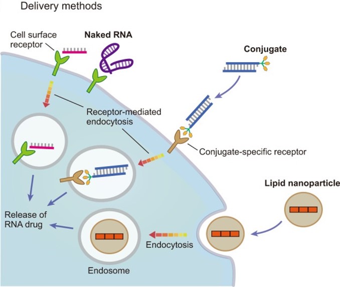 RNA療法的遞送仍然面臨巨大的挑戰(zhàn),現(xiàn)有遞送方式可分為添加靶向片段、脂質(zhì)納米顆粒包封RNA片段以及不經(jīng)修飾直接給藥到靶器官。