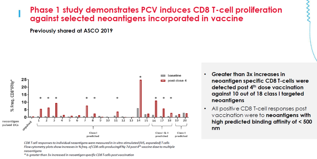圖7 mRNA-4157可以激活腫瘤新生抗原的特異性T細(xì)胞,誘導(dǎo)新生抗原特異性CD8+ T細(xì)胞的增殖 [19]