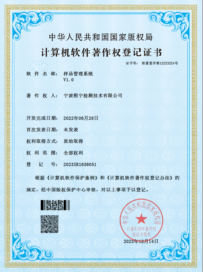 熙寧|精翰樣品管理系統(tǒng)計(jì)算機(jī)軟件著作權(quán)登記證書
