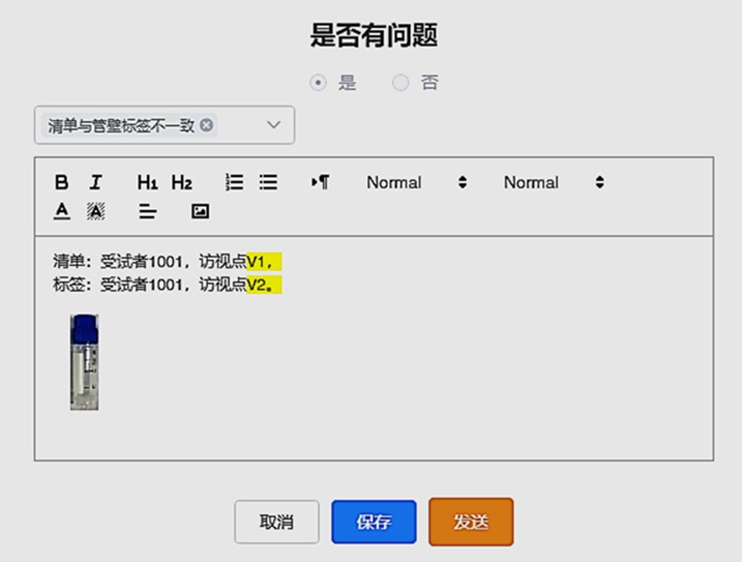 中心實(shí)驗(yàn)室的樣本管理員可以直接在系統(tǒng)中錄入詳細(xì)的問題描述: