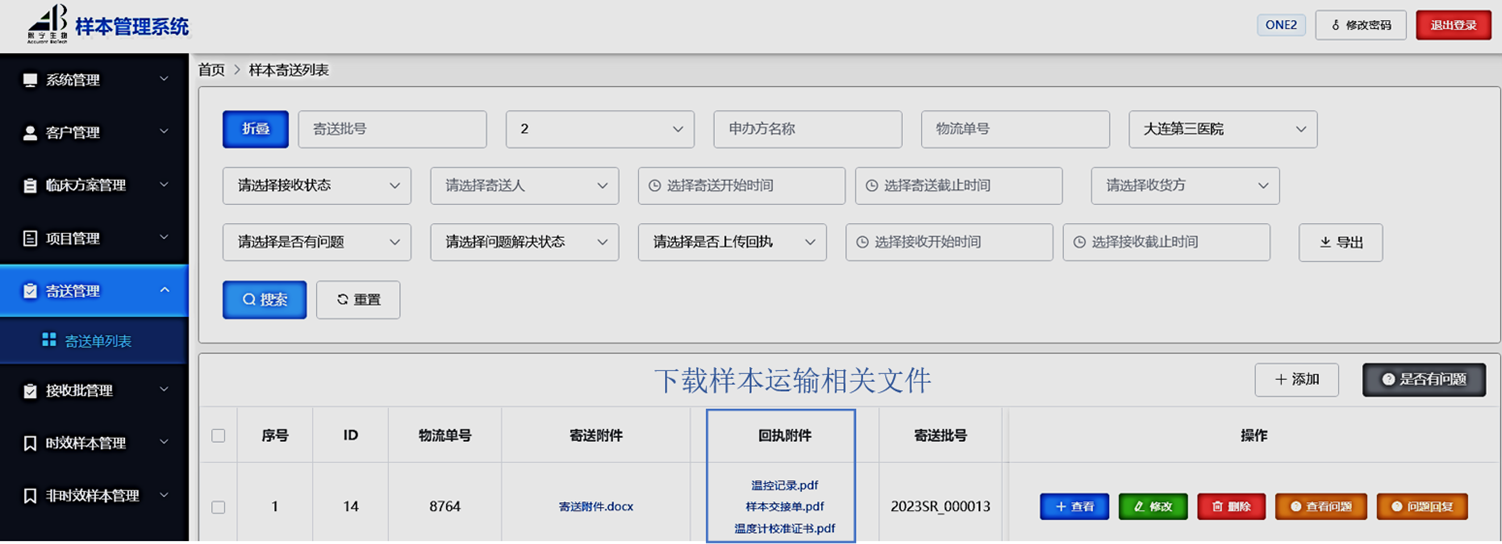 3. 系統(tǒng)中可以上傳樣本運(yùn)輸相關(guān)文件,避免因?yàn)槿藛T變動(dòng)導(dǎo)致文件丟失。