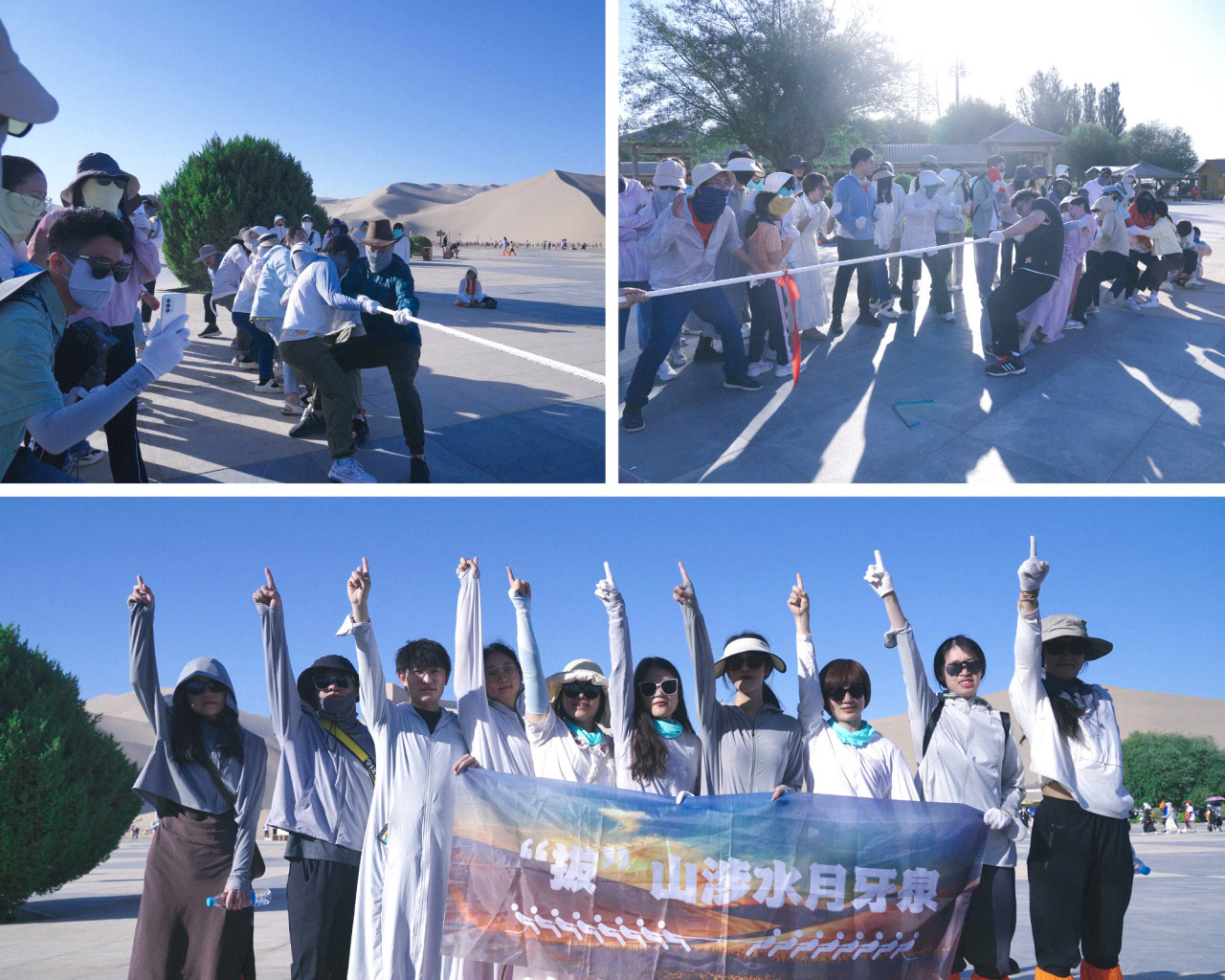 在這里我們開始了最后一項(xiàng)團(tuán)隊(duì)PK項(xiàng)目——“‘拔’山涉水月牙泉”拔河比賽。這項(xiàng)延續(xù)了熙寧團(tuán)建傳統(tǒng)的簡單項(xiàng)目,展現(xiàn)出熙寧人齊心協(xié)力,團(tuán)結(jié)一心,奮力拼搏,不甘人后的精神風(fēng)貌!