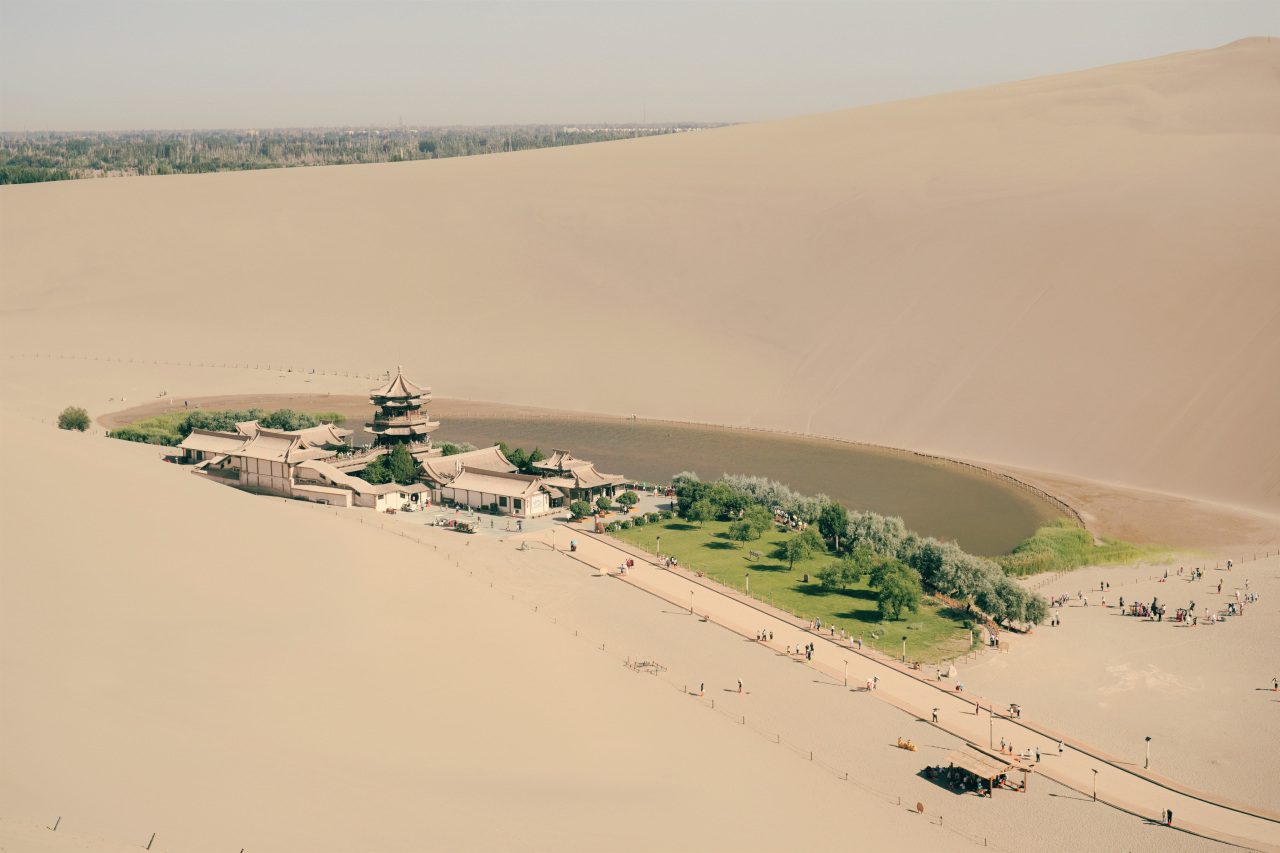 駝鈴悠揚(yáng),據(jù)說黃沙也想一睹藍(lán)天的模樣,于是在沙地一隅睜開了月牙般的眼眶。