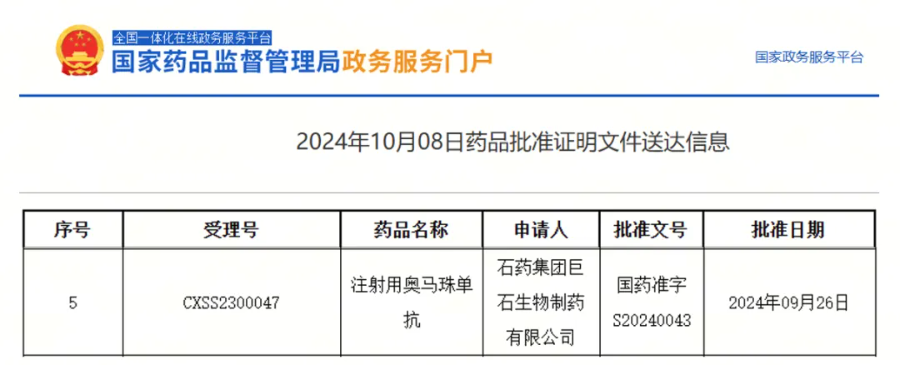 2024年10月08日,中國(guó)國(guó)家藥品監(jiān)督管理局網(wǎng)站公示