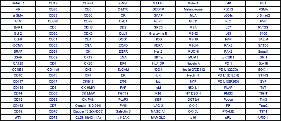 具體技術(shù)手段包括:提供HE染色,各種靶標(biāo)的免疫組化單染,雙染的檢測,全自動化的9色mIHC樣本檢測服務(wù),全面的基于FISH檢測技術(shù)的基因擴(kuò)增,基因斷裂,基因缺失,基因融合等檢測服務(wù)。